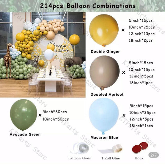 214pcs Jungle Balloons Arch kit Baby Shower, Birthday Parties, Double Mustard, Apricot, Sage green, Double stuffed.