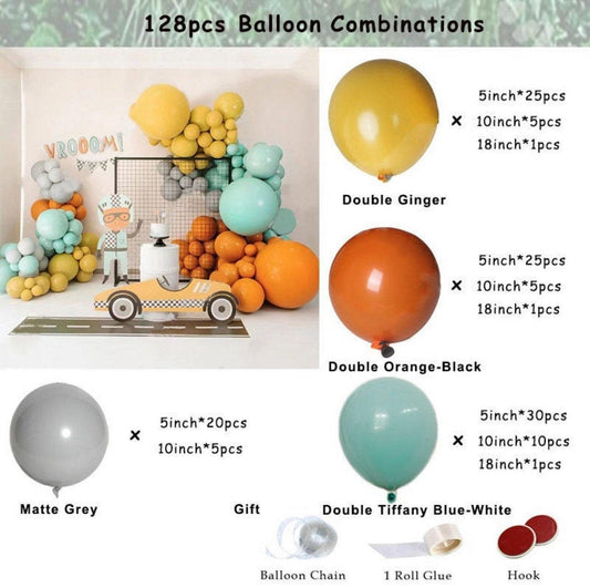 128pcs Macaron Balloon Garland Arch | Tiffany Blue | Wedding Decoration | Double Orange | Double Mustard | Birthday Party | Baby Shower.