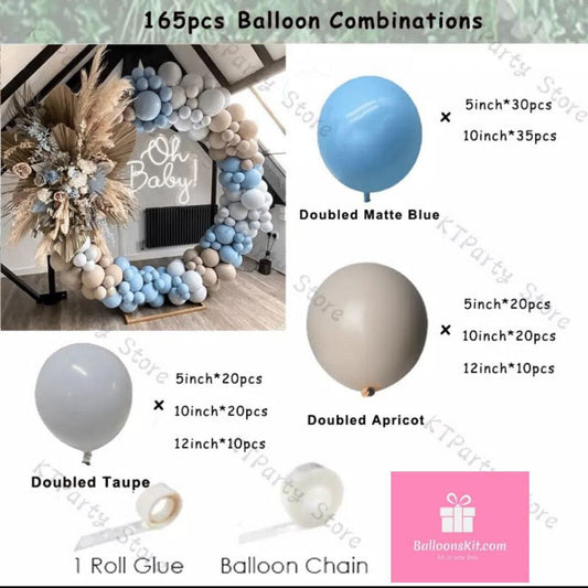 165 Pcs luxe Balloon Arch Garland Kit | Macaron Blue Grey Apricot Balloon Arch Kit Garland | Baby Shower Decor | Baby Boy | Birthday Boy.
