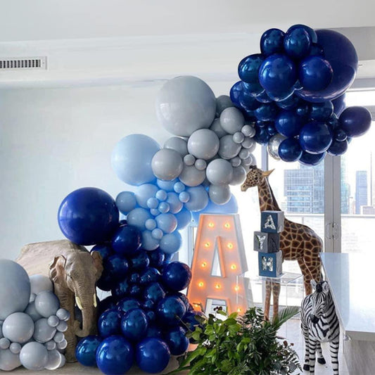 170PCS Blue Balloons Garland Arch Kit Dark Blue Maca Blue Balloons Garlands Silver Balloon For Jungle Safari Theme Birthday