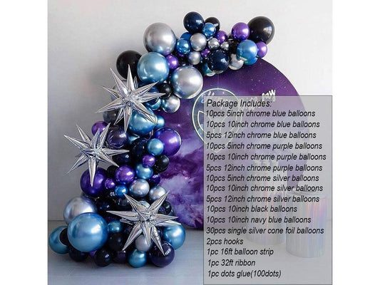 Space Birthday Decorations Supplies Metallic Chrome Blue Purple Silver Balloon Arch Garland Kit-125pcs Blue Purple Silver Balloons for Space