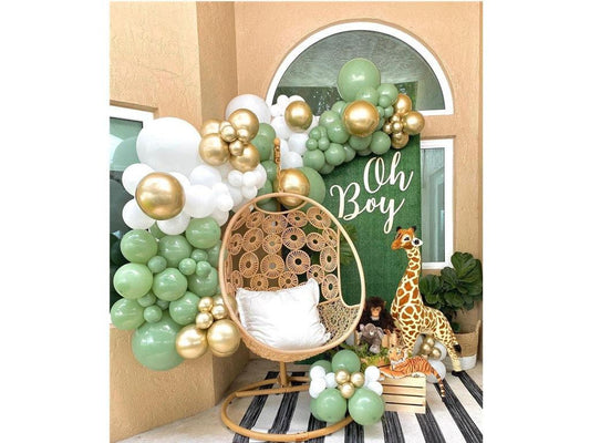Sage Green Gold White Balloon Garland Kit 127 Pack Different Sizes Olive Green Matte White Metallic Gold Confetti Latex Balloons