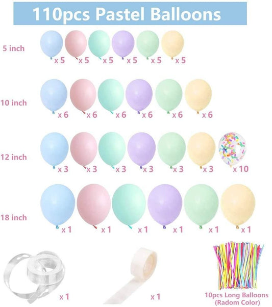 Pastel Balloon Garland Arch Kit, 110pcs Macaron Candy Colored Rainbow Assorted Latex Balloons