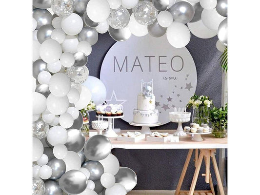 110pcs White Silver Balloons Garland Arch Kit White Silver Metallic Confetti Latex Balloons Arch Set for Birthday Baby Shower