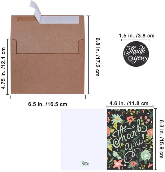 Thank You Cards With Envelopes 48 Bulk - Floral Thank You Cards 6 Design 4 X 6 Inch for Wedding