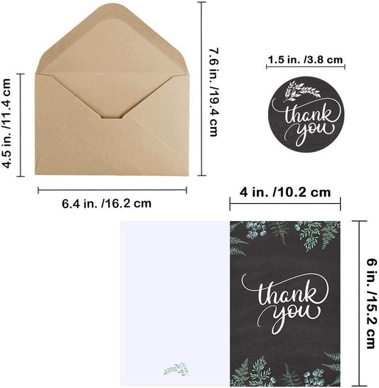 150 Sets Thank You Cards with Envelopes Stickers Bulk Thank You Notes 6 Designs of Chalkboard Floral Thank You Note Cards