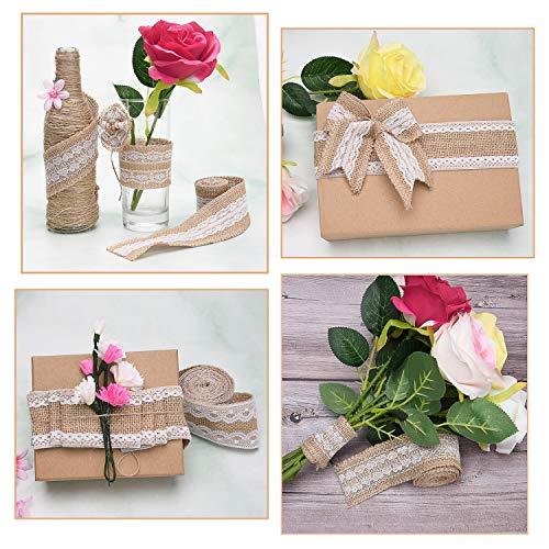 6 Rolls 2 Inch Width Natural Jute Burlap Ribbon with White Lace for Wedding Decoration