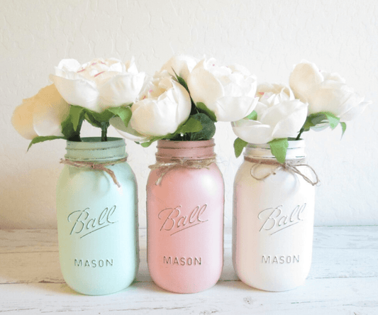 3 Pint Painted Mason Jars, Painted Mason Jars, Shabby Chic Mason Jars for Wedding Centerpieces and Wedding Aisle Decorations