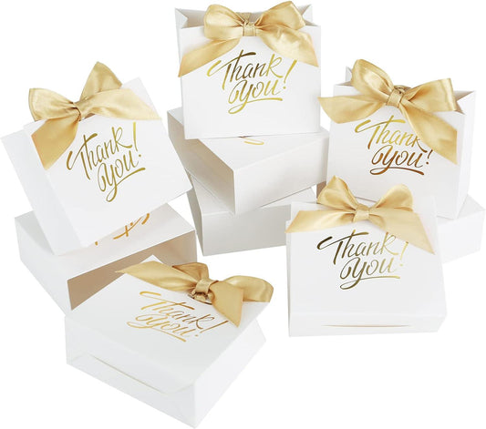 Small Gift Bags, 50 Pack Small Thank You Bags 4.5x1.8x3.9 Inches Party Favor Bags White Paper Gift Bags Candy Bags with Bow Ribbon