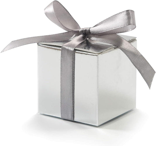 100 Pack Favor Boxes 2x2x2 inch Candy Boxes Silver Gift Boxes with Ribbons for Wedding Baby Shower
