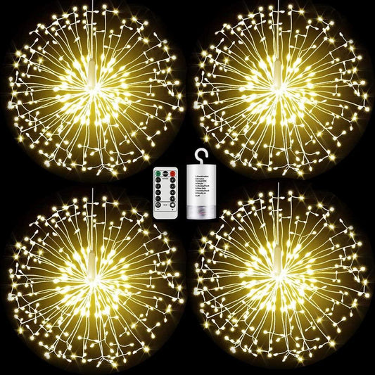 4 Pieces Firework Lights Led Copper Wire Starburst String Lights 8 Modes Battery Operated Fairy Lights with Remote,Wedding Christmas Decorative Hanging Lights