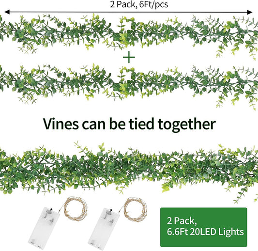2 Pack 12ft Faux Eucalyptus Vines Greenery Garland with LED Light String Wedding Backdrop Arch