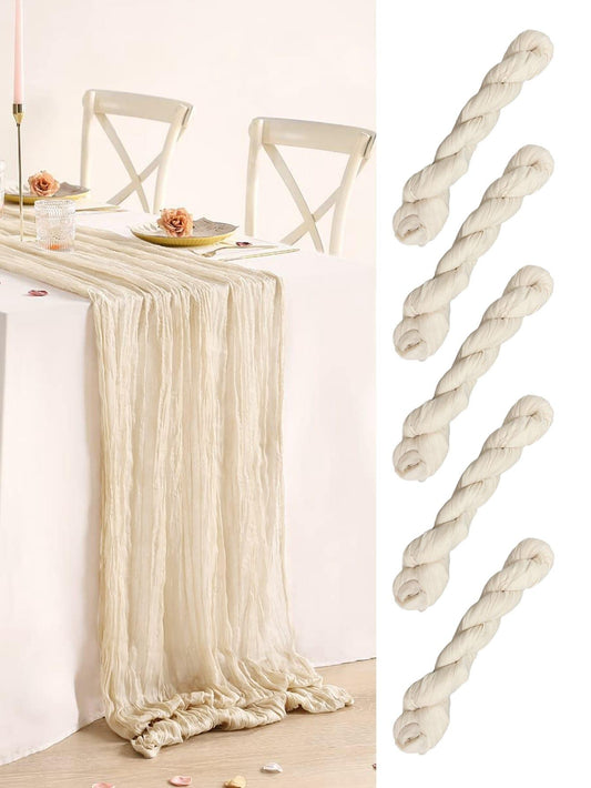 12 Pack Boho Gauze Table Runner Bulk, Rustic Sheer Table Runner 120 inches Long for Wedding Bridal Baby Shower Spring Table Decor