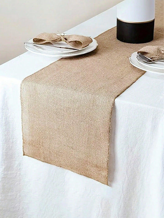 1pc Reusable Burlap Table Runner,Simple Solid Washable Kitchen Table Runner For Wedding