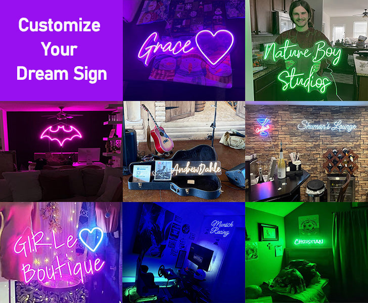 LED custom neon sign is a great addition to bedroom decor, bringing bright colors to your wall and creating a dreamy ambience!